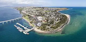 Originally established as a fishing village, the town's economy is now largely based on tourism, particularly travellers from Melbourne on weekend day trips around the Western Port Bay. It is located 122 km (76 mi) southeast of the Melbourne central business district, and can be reached via the South Gippsland Highway and then the Bass Highway. Its nearest neighboring localities are the towns of Newhaven and Cape Woolamai across the strait on Phillip Island.