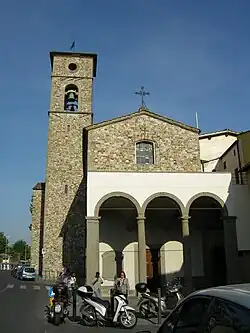 The church was built in the 11th century by the Vallombrosans as part of an abbey complex. During the 1529 Siege of Florence, the church was partially destroyed. It was reconstructed in accordance with its original style with the exception of the portico which was built with a 16th-century style. The interior of the church is of a single aisle, Latin-cross design with a rectangular apse.[1] The refectory contains a masterwork fresco of the Last Supper (1519-1527) by Andrea del Sarto.
