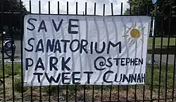 Sanatorium Park (Welsh: Parc Sanatorium) is a public park in the Canton district of western Cardiff, Wales. It includes open green space, wildflower hedgerows, two play areas, and a football goal with a half basketball court.