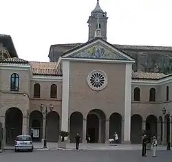 The miraculous water was collected in a fountain[2] in the gardens of the convent, where a small temple was built with mosaics of the Old and New Testament. The reception area is dominated by a large bronze statue of Christ with the inscription "EGO SUM VIA VERITAS ET VITA" (I am the way, the truth and the life).