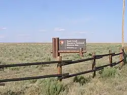 On August 2, 2005, President George W. Bush gave final approval for the site. On April 23, 2007, it was announced that site would become America's 391st official park unit[4] with an effective date of April 27, 2007.[5] The dedication ceremony was held on April 28, 2007.[6] In October 2022, leaders from the Northern Arapaho Tribe, the Northern Cheyenne Tribe, the Cheyenne and Arapaho Tribes along with descendants of some of the massacre’s victims and survivors joined Secretary of the Interior Deb Haaland at the site as she announced the purchase of an additional 3,478 acres (1,407 ha).[7] The area included lands listed on the National Register of Historic Places for their significance. Archaeological remains include evidence of the village where Cheyenne and Arapaho families were camped, along with an intact viewshed that is key to the integrity of the site.[8] The expansion of the site contributed to one of the most intact shortgrass prairie ecosystems within the National Park system, providing habitat for a wide range of plants, wildlife and species of special concern.[9]