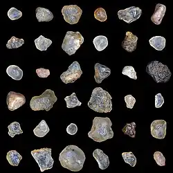 Samples are from the Gobi Desert, Estonia, Hawaii and the mainland United States. (1×1 cm each)[1]