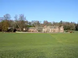 The Grade II listed school main building dates from 1825, and is notable for its classical Greek architecture and cob walls, thought to be the highest of their kind in the country.[3] The hamlets of East Village and Newbuildings are within the parish.