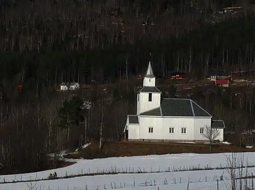 Sandnes Church (Norwegian: Sandnes kyrkje) is a parish church of the Church of Norway in Bygland Municipality in Agder county, Norway. It is located in the village of Åraksbø on the east side of the Åraksfjorden. It is one of the churches for the Bygland og Årdal parish which is part of the Otredal prosti (deanery) in the Diocese of Agder og Telemark. The white, wooden church was built in a octagonal design in 1844 by Anders Thorsen Syrtveit who used plans drawn up by the famous architect Hans Linstow. The church seats about 200 people.[1][2]