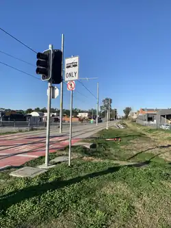 The overhead wires were removed in December 2002. Traffic was officially suspended and a Stop Block placed across the tracks on the Sydney side of Access Rd level crossing in October 2016.