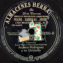 "Sandunguera" is a bolero written by Marcelino Guerra and Luis Piedra for Arsenio Rodríguez in 1943. Arsenio's version, however, was arranged as an uptempo guaracha and released as the B-side of Pablo Cairo's "Sin tu querer" by RCA Victor.[2] The song has since been covered by multiple artists, including Marcelino Guerra himself, and has been called a "classic track"[3] and an important recording in the development of Arsenio's career.[4]