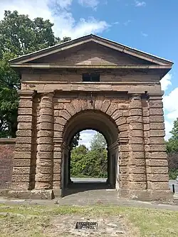 - ^ Historic England. "Arch lodge and flanking wall (Junction 1 M5 Motorway and A41) (1342673)". National Heritage List for England. Retrieved 4 September 2019.