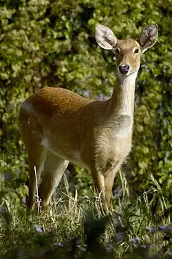 The only floating National Park in the world,[3] the Keibul Lamjao National Park located on the Loktak Lake is the last natural habitat of the "Sangai" (Rucervus eldii eldii), the dancing deer of Manipur. Other wildlife to be seen include: hog deer, otter, water fowl and migratory birds, the latter usually sighted during November to March. The Forest Department of Manipur maintains watch towers and two rest houses within the park.
