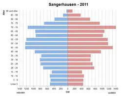 Location of Sangerhausen within Mansfeld-Südharz district ![]() | |