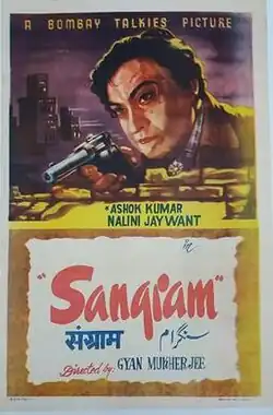 Sangram is a 1950 Indian Hindi-language film about a spoilt child in adulthood, directed by Gyan Mukherjee and starring Ashok Kumar, Nalini Jaywant in lead roles. A box office success, the film became the sixth highest earning Indian film of 1950, earning an approximate gross of Rs. 1,00,00,000 and a net of Rs. 55,00,000.[1][2] "Sangram" is a precursor to the cop-father – criminal-son theme that later came to be a favourite in Bollywood, though it was made in film noir style that had begun to inspire filmmakers, and Gyan Mukherjee was no exception. An intense, bold 139-minute violent crime drama, with Ashok Kumar daring to essay a negative character, at a time that he was in great demand as a hero. And he excelled in it. The first of the many such films he went on to star in during the early '50s.