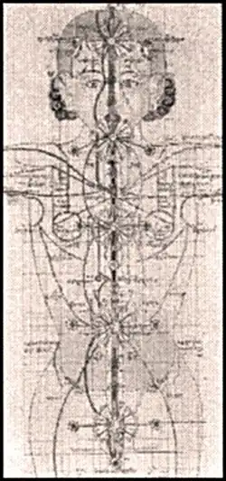 The tradition emphasizes the existence of five major chakras, which are depicted in Blue Beryl as possessing twenty-four spokes, said to symbolize their ability to generate and link with the numerous subtle meridians or currents (Classical Tibetan: rsta). The Brow and Throat centers are associated with the cosmic plane (stod); the Heart center to the human plane (bar); and the Solar and Vitality centers to the earth plane (smad).[11]