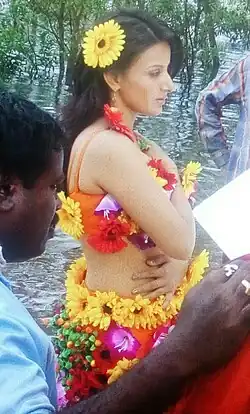 Pooja Gandhi is an Indian actress and model who mainly works in Kannada-language films.[1][2] After starring in the commercially successful 2006 film Mungaru Male, Gandhi became one of the most-popular and highest-paid actresses in Kannada-language films and won several awards, including an honorary doctorate.[3][4][5][6] Gandhi is most-commonly referred to as Male Hudugi (Rain Girl) in the media and the Kannada film industry.[7][8] Gandhi has acted in over five languages and 50 films in a decade.[9][10][1] The Bangalore Times placed her in its list of "25 Most Desirable Women of 2012".[11][12][13]
