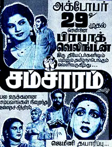 Samsaram (/səmsɑːrəm/ transl. Wife) is a 1951 Indian Tamil-language drama film directed by Chandru and produced by S. S. Vasan. A remake of the 1950 Telugu film of the same name, it stars M. K. Radha, Pushpavalli, Kumari Vanaja, Sriram, M. S. Sundari Bai, T. R. Ramachandran, D. Balasubramaniam, R. Balasubramaniam, K. N. Kamalam, and Kamalaveni Ammal. The film was simultaneously filmed in Hindi as Sansar (/sənsɑːr/), which Vasan directed.[1] Samsaram was released on 19 October 1951.[2]