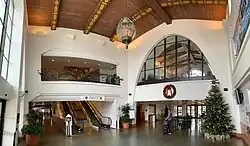Additions to the historic terminal made in 1967 and 1976 were removed and the original building was restored. It then was raised to meet modern flood plain regulations, and moved and incorporated into the new terminal. The aircraft parking ramp was redesigned, and a new loop road and short term parking lot were constructed. The new terminal building features many environmentally sustainable elements and is registered with the U.S. Green Building Council Leadership in Energy and Environmental Design (LEED). It was originally designed to feature four glass passenger boarding bridges and four hardstands, but due to decreased flight activity, three jetbridges were constructed with five hardstands.[10]