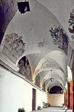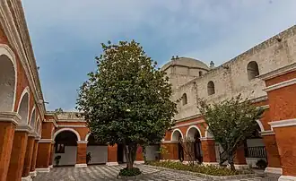Its first facilities were destroyed in 1600 and 1604 by earthquakes,[1] but after these the community of Santa Catalina experienced a definitive rebirth, thanks to the entry of many catalinas of high lineage, from rich Arequipa families of that time,[1] its current building corresponds to the last third of the 17th century.[1]