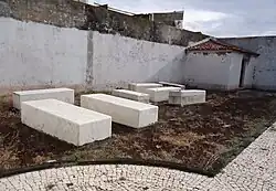 At the time, and before it was partially destroyed by the installation of a railline to support the construction of the port, the eastern cove of Ponta Delgada was far deeper, and was situated by Gaspar Frutuoso.[3] The temple, as Frutuoso explained, existed since 1522, and was implanted a short distance from the current church.[3] The reference to a pebble beach, in the bay [of Ponta dos Alagres], situated in front of the property of Francisco Arruda da Costa, suggests that the remains of the small castelinho, supports many of the early descriptions. The small fort would, originally, have been situated over the clifftop walls over the coast, which were common to early island forts.[3] The military redoubt, constructed in the 16th-17th century (with its first repair in 1643) was an important bastion in the defense of the zone, and one of the oldest populated spaces.[3]