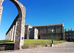 Founded at the beginning of the 14th century, the monastic community of Santa Clara was always confronted with serious problems concerning the water supply to the monastery in the territory of Vila do Conde.[1] At that time a tank (the arca de água) was constructed within the monastery, which quickly became insufficient to meet the communities' needs.[1] In 1626, the abbess D. Maria de Meneses, from the House of Pentieiros, purchased lands and contracted a master-builder to construct an aqueduct to bring waters from a spring in Terroso, in Póvoa de Varzim, to support the convent.[1][2] The construction was interrupted by abbess D. Catarina Lima in 1636, owing to the discovery of a significant slope, making the prior work useless.[1][2]