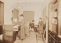 In July 1914, Santa Clara County began operating a county library.[3] Stella Huntington was appointed the first County Librarian and to begin operations, she purchased a typewriter, dictionary, and a desk with two chairs. In the first year of service the collection consisted of "6,127 books and reached a circulation of 49,048."[4] Two years earlier, a one-cent tax had been levied for the purpose of supporting a county library. It provided $3,700 for the first year of operation. Seventeen branches were opened; the population of Santa Clara County at that time was approximately 90,000.