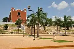 The original location founded in this area was named Nohcacab and was inhabited during the Classic Maya period (600–1000 AD). At the conquest an encomienda, that is a tribute-paying small community with an ethnically mixed population which included Spanish people, criollos, mestizos and mulattos, was established.[4] In the early 1840s the explorer John Lloyd Stephens used this small community as a base from which he and his companions departed to explore the Puuc area: thanks to this fact we still have detailed accounts about the people of Nohcacab and their culture, as well as drawings showing how these visitors perceived the village at that time.[5]