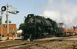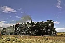 In August of 2002, 3751 operated an Amtrak excursion train from Los Angeles to Williams, Arizona to participate in the 2002 National Railway Historical Society (NRHS) Convention.[9][10] The excursion ran over Metrolink, BNSF, and Arizona and California Railroad tracks.[10] After arriving in Williams, the locomotive pulled some excursions and photo run-bys on the Grand Canyon Railway (GCR) between Williams and the Grand Canyon Village, including a doubleheader with GCR 2-8-2 No. 4960 and a tripleheader with GCR 2-8-0 No. 18.[9][10] No. 3751 also pulled some of GCR's Pullman passenger cars for a photo charter requested by Goodheart Productions.[9][11]