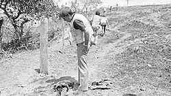 When the crew passed the El Paraíso barracks, they noticed a jeep began to follow them but it eventually went away.[1][9] At around 5 p.m., the journalists and their guide turned off the main road and drove up a road called Calle Santa Rita connecting El Paraíso to Cantón Piedras Gordas, Santa Rita, and San Rafael, where they met 3 more guerrillas named "Martín," "Carlos," and "Tello," after which, their driver, Armin Wertz, returned to San Salvador since they planned to stay with the guerrillas for several days.[1][9] The 9 men walked into the jungle, but they were ambushed by the army with 8 of the being killed.[1][9] "Martín" was the only survivor.[1] According to Thomas Buergenthal, a member of the United Nations' Truth Commission for El Salvador, "the military waited for them and basically executed them."[14] Their driver was notified of the massacre at 7am the next day.[9] The bodies of the journalists were returned to San Salvador.[9]