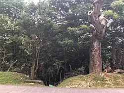 Site of the massacre as seen in 2021. A memorial plaque used to be on the large tree on the right, however, it has since been destroyed.