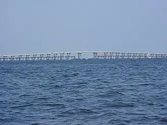 Three bridges carry pedestrian and automobile traffic to the barrier islands on the south side of the sound. The first two bridges have the lowest clearance of any span over the Gulf Intracoastal Waterway. For this reason, many sailboats with masts taller than 50 feet must "go outside" and bypass the protected sound using the unprotected waters of the Gulf of Mexico.