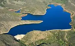The other two reservoirs are Gibraltar Reservoir, impounded by Gibraltar Dam, and Jameson Lake, impounded by Juncal Dam. Gibraltar Reservoir supplies water to the City of Santa Barbara via the Santa Barbara Water Tunnel under the Santa Ynez Mountains. Jameson Lake supplies water to the Montecito Water District via another tunnel under the Santa Ynez Mountains. In 2004 the diversions amounted to 3,130 acre-feet (3,860,000 m3) from Gibraltar Reservoir, and 1,730 acre-feet (2,130,000 m3) from Jameson Lake.[8]