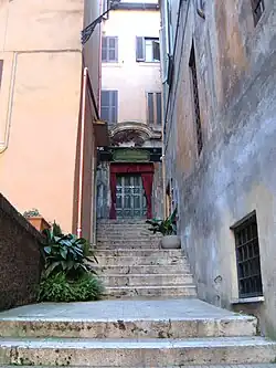 The church was deconsecrated and auctioned in 1902 by Prince Filippo Orsini.[6][8] In 1905, the northern part, accessed from Via di S. Simone, became the "Alcazar" cinema,[5] then a restaurant and finally a theater[9] which ceased its activity in 2006.[10] The southern part was transformed into apartments.[5]