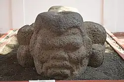 The municipality is home to three colossal Olmec head and the Tres Zapotes Museum/Archeological Site .[1] This site was occupied from about 900 BCE to somewhere between 400 and 300 BCE, contemporary with La Venta in Tabasco. It is centered on a hill used to astronomical observations and mathematical calculations related to the Olmec calendar system .[1] The site is named after the community of Tres Zapotes, 21 km from the city of Santiago Tuxtla. Originally the land was part of the Hueyapan de Mimendi Hacienda, dedicated to the growing of zapote fruit.[4] The site was opened to the public in 1974, focusing on the site museum which contains a number of important artifacts.[1]