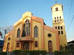 One of Santo Tomas' cultural icons is the 1785 Holy Guardian Angels Parish Church, which celebrates the Patronal Fiesta on October 2.[47] Its Parish Priests are Father Raul S. Panay and Fr. Emmanuel Bahiwag[48] under the Vicariate of St. Francis Xavier under Vicar Forane, Fr. Joel Angelo Licos,[42][47] under the jurisdiction of the Diocese of San Fernando de La Union (Latin: Dioecesis Ferdinandopolitanus ab Unione, Suffragan of Lingayen – Dagupan), a diocese of the Latin Catholic Church in the Philippines. The diocese was established in 1970 from the Archdiocese of Nueva Segovia.[49][50]