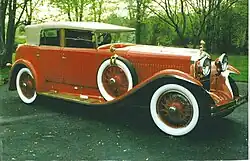 A suspected Saoutchik construction on a Cadillac V16 chassis around 1930 has not yet been verified,[9] but there is a Bentley 6 ½ liter from 1929 with a short chassis that an American customer had bodied by Saoutchik. The chosen structure was a three-position convertible in which the top could be opened fully or partially (only over the front seats), and there was also an integrated trunk. Saoutchik incorporated both French and British style elements and used nickel silver appliqués.[10]