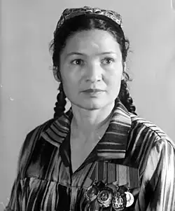 - ^ "Указ Президиума Верховного Совета СССР О награждении орденами и медалями СССР работников искусства и литературы Узбекской ССР" [Decree of the Presidium of the Supreme Soviet of the USSR On awarding orders and medals of the USSR to workers of art and literature of the Uzbek SSR]. Pravda Vostoka (in Russian). No. 65. 19 March 1959. p. 1.