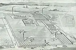 MacFarlane oversaw the removal of all the trees, creating the foundry on 14 acres (5.5 hectares), with its main gates at 73 Hawthorn Street. After creating railway access to his foundry from both the North British Railway and the Hamiltonhill Branch of the Caledonian Railway, MacFarlane laid out the rest of the park land as streets and houses, including naming the street fronting his factory "Saracen Street."[3]