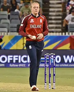 ![]() Glenn playing for England during the 2020 ICC Women's T20 World Cup | ||||||||||||||||||||||||||||||||||||||||||||||||||||||||||||||||||