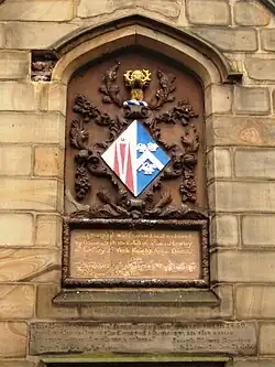 In 1700 she built and endowed an almshouse at York for ten poor women of her own religious views. The plaque on the building reads "This hospital was founded and endowed by Dame Sarah the Relict of Sir John Hewley of the City of York, Knight. Anno Domini 1700. Thou O God hast prepared of thy goddness for the poor." The Hewley Trust was formally created on the 13 January 1705 and the 26 April 1707. It was intended to be known nationally but basing itself in the north. It cared for single or widowed women who were over 55 years old in a hospital in York.[2] She also was a major funder of what is now the York Unitarian Chapel and Lady Hewley's Almshouses which are now beside it. They were originally in Tanners Row but were forced to move when the railway needed the land in 1839.[3] Beside the church is the entrance to the almshouses and the Warden's House which has a plaque recording Lady Hewley's bequest and her preference for Unitarians to benefit from the almshouses.[4]