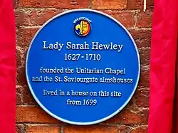 - ^ a b "Lady Sarah Hewley, (1627-1710) | York Civic Trust". Retrieved 2020-03-22.