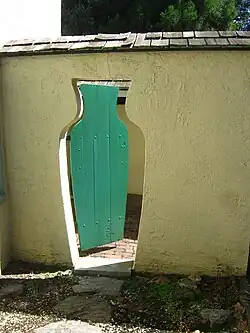 Sarah made several changes to the estate. Telephone and electricity were added via underground wires, so as not to disturb the garden. Upon the opening of nearby 20th Street, a restraining wall 900 feet long and in some places 14 feet high was built to provide security and protection from heavy traffic and passersby. James added water and rock gardens. Sarah herself added a garden of 100 hybrid tea roses. After a trip to China in 1933, they reworked a section of the garden in Chinese style. “A plastered stone wall, separated by a tiny hip roof and an entrance to it is made through a large vase-shaped gate, on one side of which appears, in red, the Chinese characters which denote the year, month, and day of its erection.”[4] The garden also holds an orange and a lemon tree taken from the orangery of Butler Place when Owen Wister sold it. Belfield Estate is now part of La Salle University’s campus.