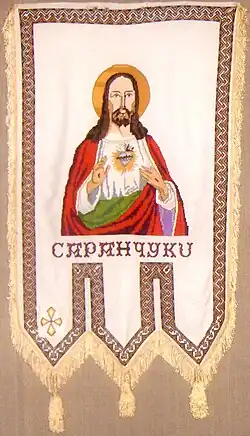 Saranchuky (Ukrainian: Саранчуки, Polish: Saranczuky, Saranczuki) is a village in Ternopil Raion of Ternopil Oblast in the western area of Ukraine, the historic region of Halychyna (Eastern Galicia). Saranchuky is located in a large, fertile valley plain of the Zolota Lypa River, about 15 km south of Berezhany. The name comes from the word "sarancha" (=Locust). Saranchuky hosts the administration of Saranchuky rural hromada, one of the hromadas of Ukraine.[1]