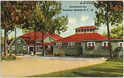 In 1920, the Eighteenth Amendment to the U.S. Constitution went into effect, prohibiting the manufacture, transportation, and sale of alcoholic beverages. Saratoga Springs soon became a center for bootlegging between Canada and Albany.[1] "Bootleggers shipping booze from Canada passed through the city. And the roadside inns around its outskirts were ideal places to make stops."[2]