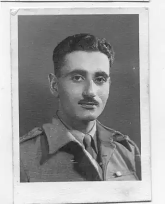 Upon completing his military training or cadetship at the Indian Military Academy, he was formally commissioned as a Second Lieutenant on the Special List with effect from 15 July 1937.[8] He was then attached to the 1st battalion Northamptonshire Regiment for a year then in August 1938 joined the 16th Light Cavalry.[9][10] After some service on the North West Frontier, when the Second World War broke out, he volunteered to go abroad for active service with any cavalry regiment being sent out to the Front, and was therefore seconded to Skinner's Horse.[11] He thereafter served in Somalia, the Middle East and North Africa from 1940 to 1942, first promoted Captain April - July 1941, after that as a temporary Major until after his father's death in December 1942, when he quit military service to take up his political role in the Punjab. Upon taking his release he was regularized with the rank of major. He stayed in London for a short period during 1943.