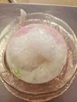 Sarim (Thai: ซ่าหริ่ม, pronounced [sâːrìm]; or ซาหริ่ม, pronounced [sāːrìm]) is a Thai dessert. It consists of colourful (usually pink and green) thin noodles made from mung bean flour in coconut milk and syrup, served cold with crushed ice.[1] The dish is mentioned in the Kap He Chom Khrueang Khao Wan poem of King Rama II (r. 1809 – 1824), though back then it was seasoned with patchouli rather than served with ice.[2]