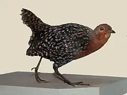 The buff-spotted flufftail (Sarothrura elegans) is a species of bird in the family Sarothruridae. It is found in forested areas[2] of Angola, Botswana, Burundi, Cameroon, Republic of the Congo, Democratic Republic of the Congo, Ivory Coast, Equatorial Guinea, Eswatini, Ethiopia, Gabon, Guinea, Kenya, Liberia, Malawi, Mozambique, Nigeria, Rwanda, Sierra Leone, Somalia, South Africa, South Sudan, Tanzania, Uganda, Zambia, and Zimbabwe.
