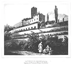 The Princes of Piedmont, Umberto II of Italy and his wife Marie-José of Belgium, were also frequent visitors to Sarre. After modernizing its interiors in 1935, they used the castle as a seasonal residence for their numerous alpine excursions. It also served as a refuge for Princess Maria-José and her children during the most challenging periods of World War II.[1][2]