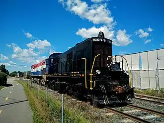 ![]() Engine 8033, a rebuilt MLW RS-23 locomotive, in Scott, Quebec | |