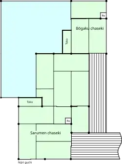 Floor plan of the Sarumen chaseki and the adjacent Bōgaku part