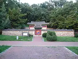 Sasechungyeolmun is the main gate built by the country to commemorate Kim Yeo-mul (1548-1592) of the Suncheon Kim clan (순천 김씨), who died during the Imjin War, and the women of his family who were defeated by the Qing army and died during the Byeongja Horan. The current building was rebuilt in 1971 and was then renovated in 1983.