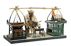 - Sunggi: In Javanese, sunggi means carrying things upon one's head using some kind of tray or platter. This practice is quite common in today's Bali and rural Java. The sunggi satay vendors—usually women—carry raw satays, lontongs, peanut sauce upon the wooden or wicker bamboo tray on their head, while carrying basket containing grill, charcoal, bamboo fan, sweet soy sauce bottle, and wooden small short chair called dingklik. The satay seller ladies may walk through residential areas or position their wares in busy areas (e.g. marketplace or tourism area), and grill the satay to their customer's order.