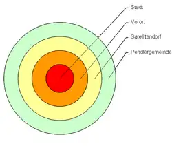 A satellite village is a term for one or more settlements that have arisen within the outskirts of a larger one. Normally people would live in a satellite village, while they worked in the city.