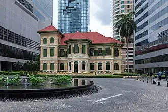 The mansion underwent extensive renovations in the 2000s, as part of the development of the Sathorn Square office tower and the W Bangkok hotel, which now flank the mansion on each side.[7] It reopened in July 2015 as a restaurant and entertainment venue for the W Bangkok, known as The House on Sathorn.[6] The building complex received the ASA Architectural Conservation Award in the award of merit for the architecture and community heritage conservation category for the 2020–2021 year.[8]